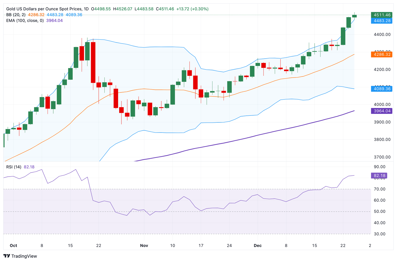 On the flip side, the first downside target for Gold is seen at the December 22 low of $4,338. Any follow-through selling below the mentioned level could expose the December 17 low of $4,300.