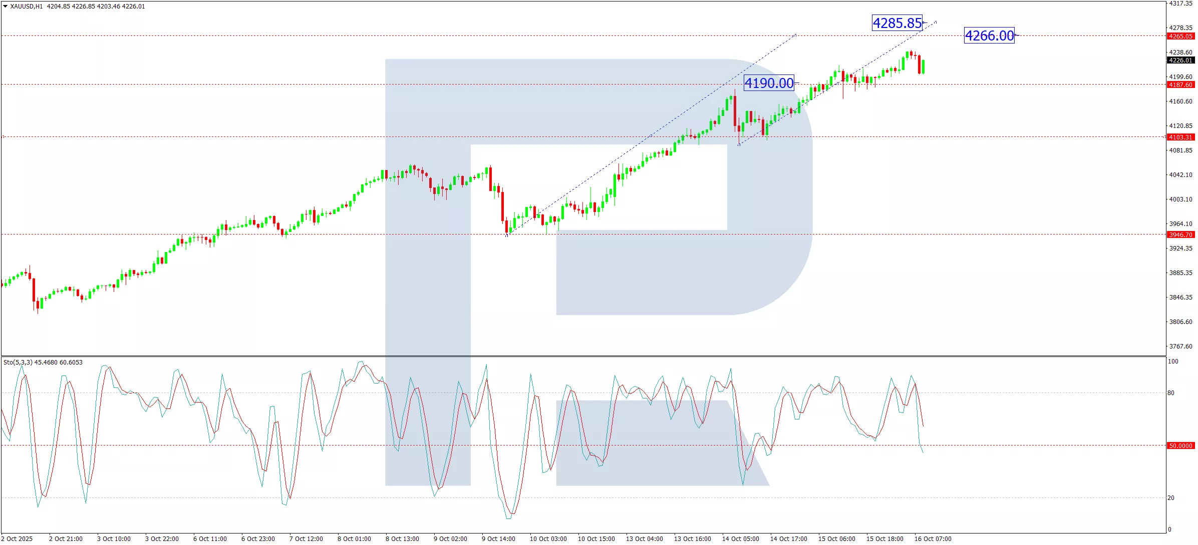On the H1 chart, the instrument decisively broke above the 4,190 USD resistance, consolidating around this level before extending its gains towards 4,266 USD. A period of profit-taking is expected here, likely triggering a retracement to retest 4,190 USD as support. A successful hold above this level could signal a resumption of the uptrend, targeting 4,300 – 4,400 USD. The Stochastic oscillator aligns with this view, with its signal line positioned above 50 and advancing towards 80, reflecting sustained bullish momentum.