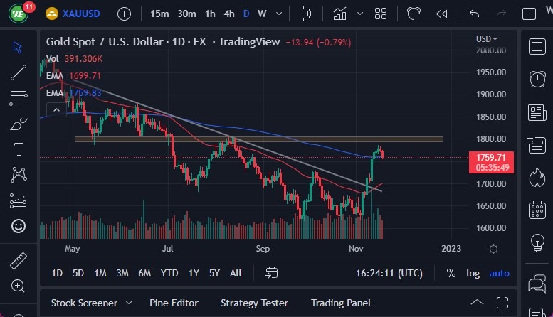 - Gold markets have struggled a bit during the trading session on Thursday, as we are threatening to break back through the 200-Day EMA.