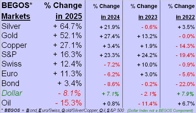 Truly beautiful, too, is the year’s ongoing leadership of our Metals Triumvirate in the BEGOS Market Standings, still pristinely led by Sweet Sister Silver. With ten months now in the books, here’s how it all looks: