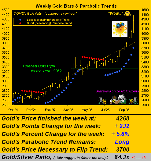 Since said enthusiastic chat, Gold went on to settle the week at 4268, inclusive of All-Time Closing Highs on each of Monday through Thursday, and come Friday, an All-Time Intraday High of 4392.