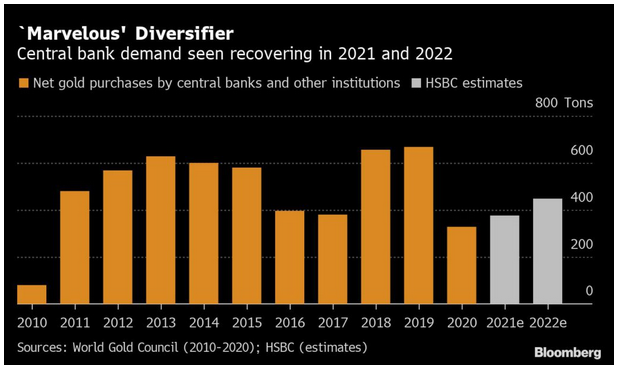 Recent buying has likely been bolstered by economic recovery and higher oil prices, encouraging emerging market nations to boost their gold holdings. The latest estimates show a trend in gold buying from central banks as they increasingly look to diversify their reserves.