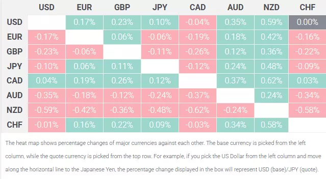 The table below shows the percentage change of US Dollar (USD) against listed major currencies today. US Dollar was the strongest against the New Zealand Dollar.