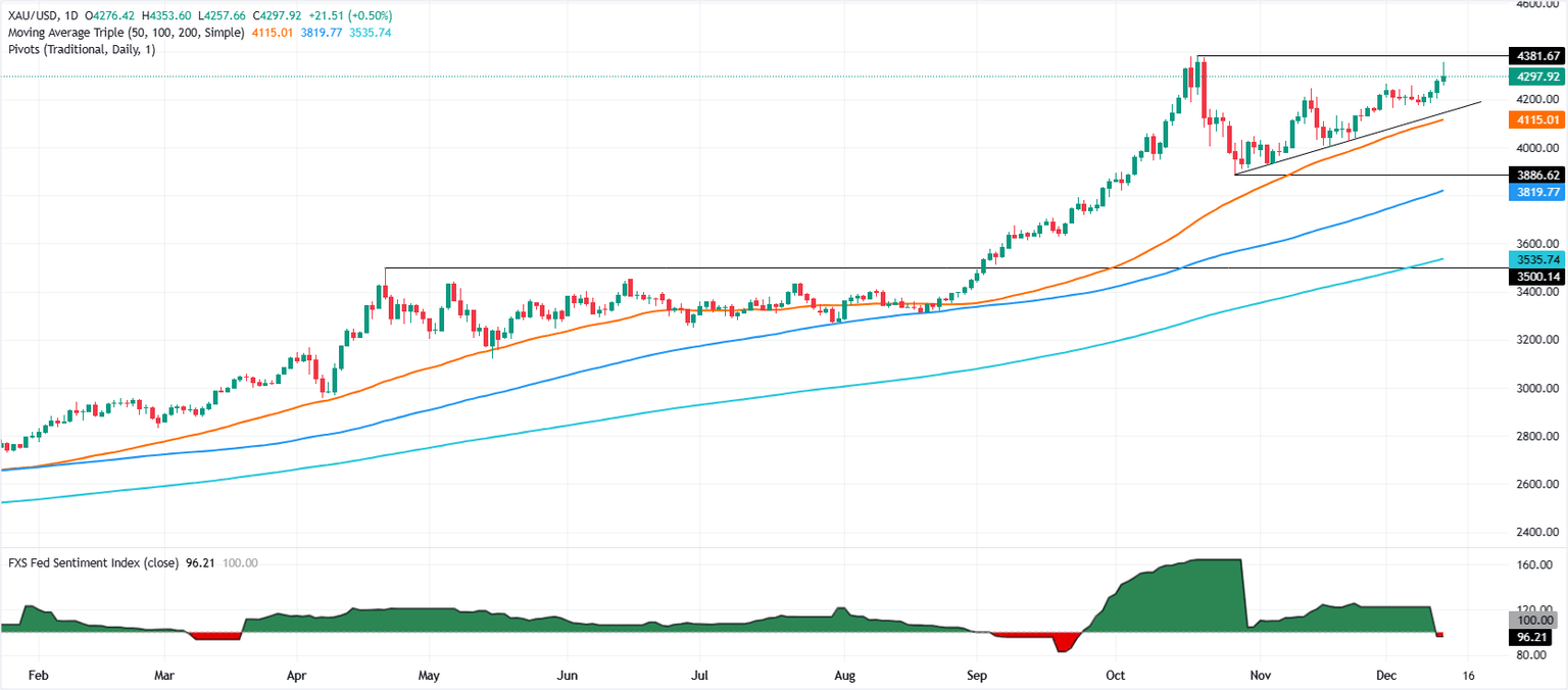 If XAU/USD climbs above the current day's high of $4,353, this opens the door to test the all-time high at $4,381. Once surpassed, the next stop would be $4,400, $4,450 and $4,500. Conversely, if Gold prices tumble below the December 11 high of $4,285, look for further downside to $4,250 ahead of $4,200.