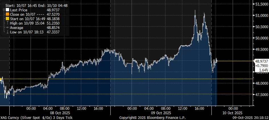 Over the last few days, Gold has exceeded the $4,000 per ounce mark, and Silver briefly surpassed the magical threshold of $50 today – a new all-time high, even if it was only intraday.
