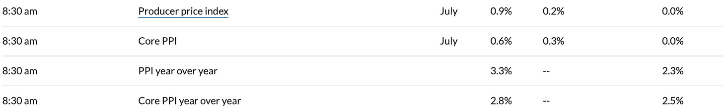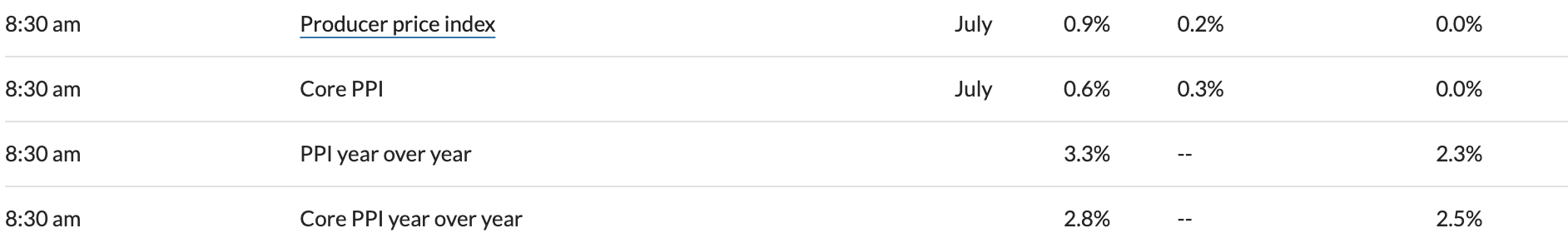 PPI came in at 0.9%, versus a 0.2% median forecast, and 0% in the prior month, while core PPI came in at 0.6% vs. an expectation of 0.3%, and the previous month's figure of 0%.