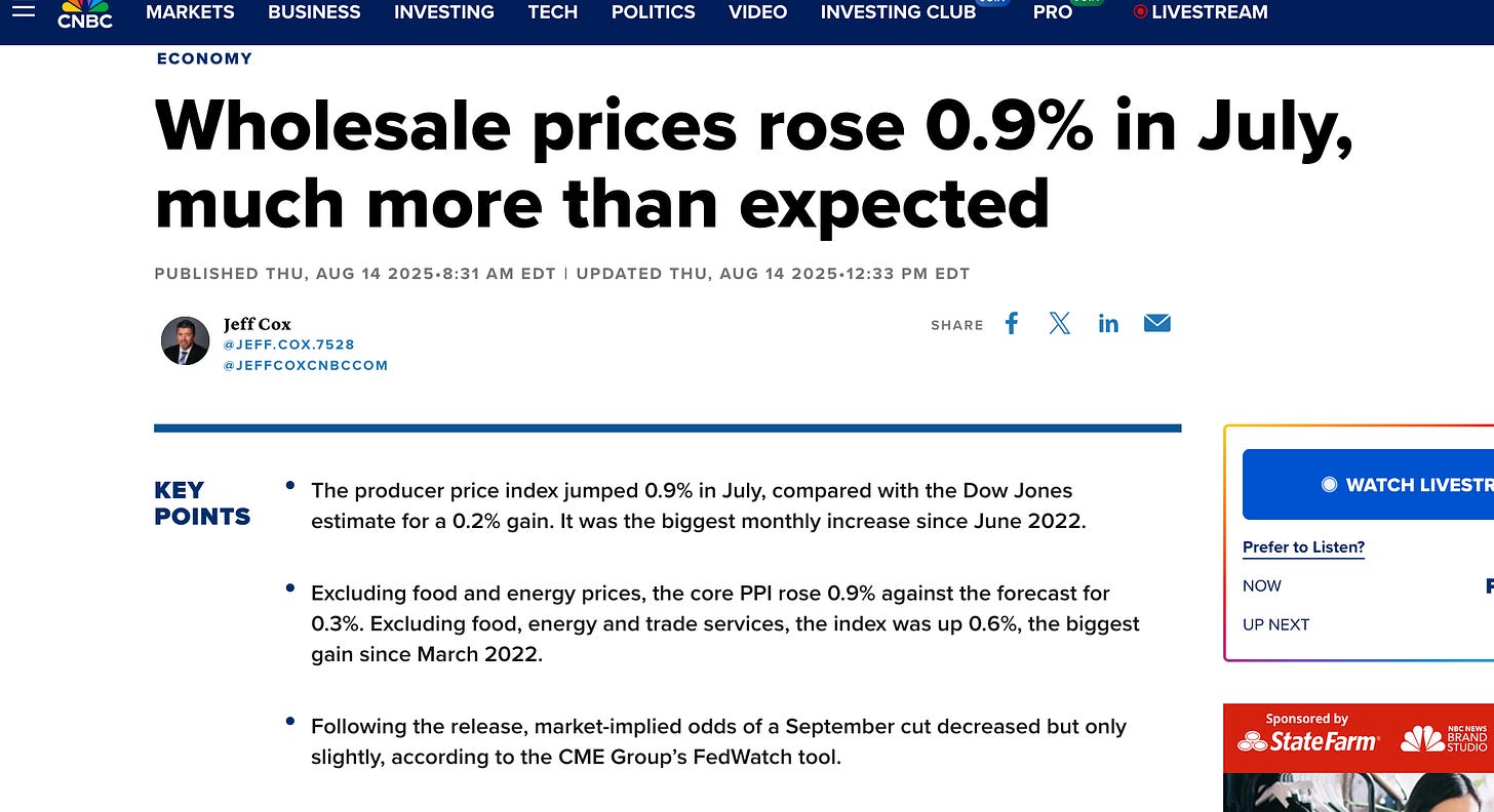 I'm curious to see how much longer the Trump administration will continue to shout from the hilltops that there's no inflation. Especially after this week's wholesale PPI report, which was, or at least should have been rather alarming to them.