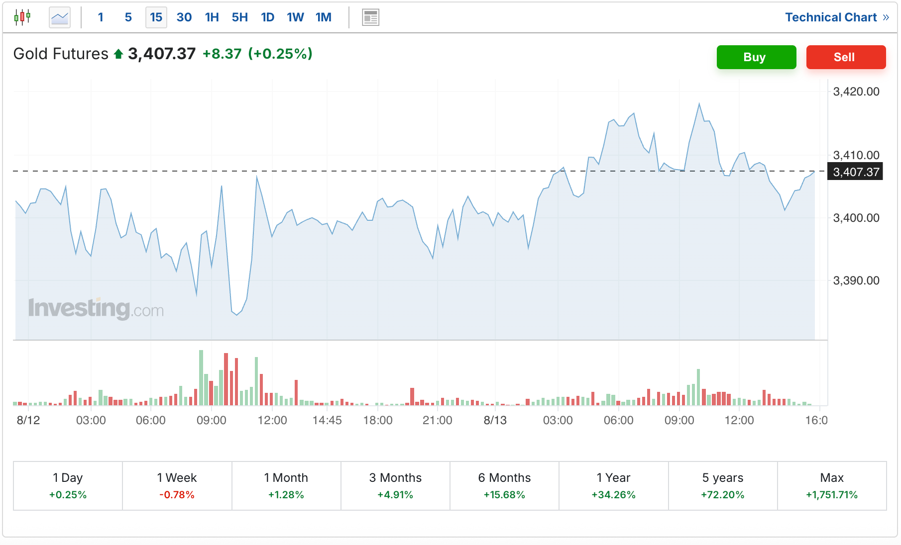 The gold futures were up $8 to cross back over the $3,400 level to $3,407.