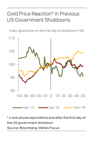 The impact of federal closures on GDP growth has tended to be minimal and short-lived, according to analysis by Metals Focus.