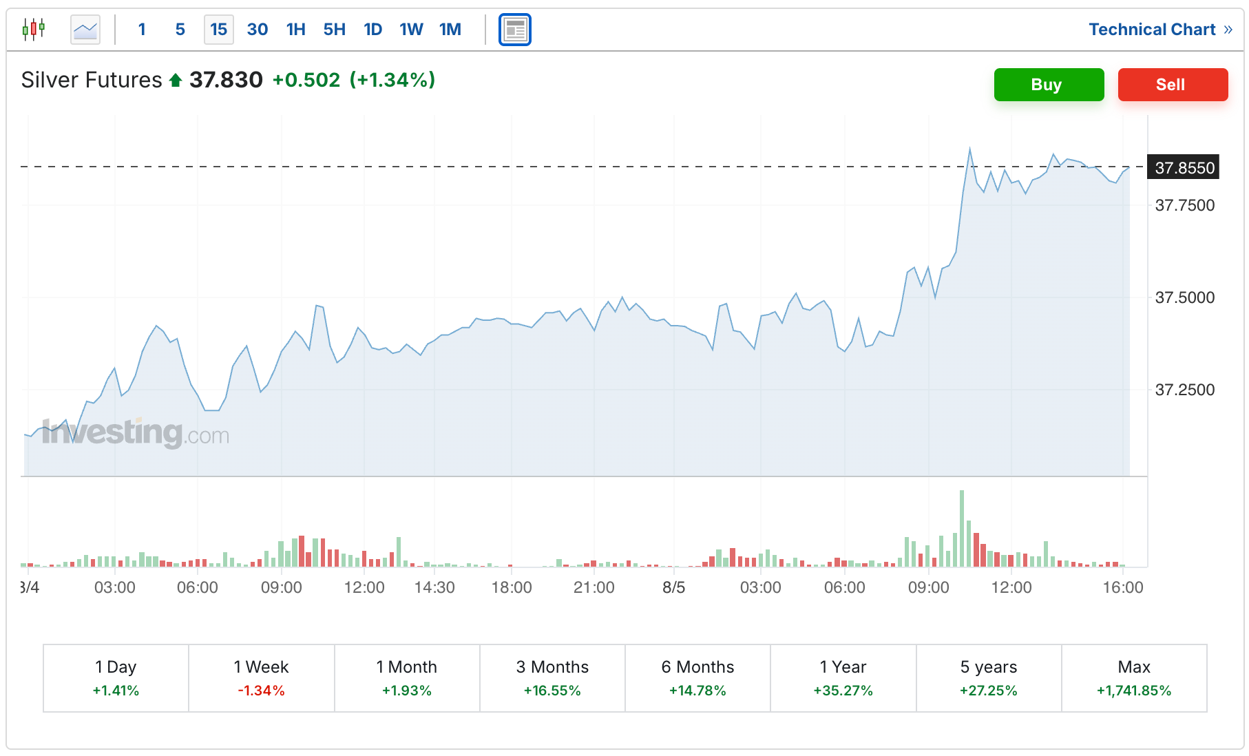 While Silver rose another 50 cents, and is once again within shouting distance of the $38 level at $37.83.
