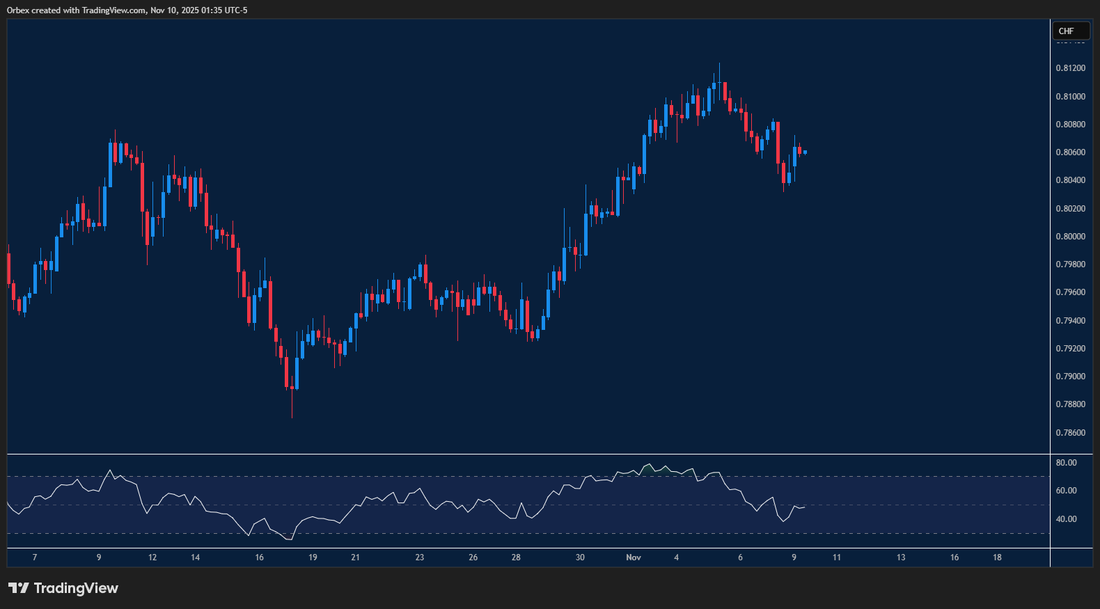 The US dollar pulls lower as the Swiss franc looks to regain its footing. A close below 0.8100 was an indication of a persistently downbeat mood as sellers doubled down. The next possible move past the psychological level of 0.8000 is on the horizon as the RSI’s push higher might lead to a further downturn. The recent swing high of 0.8060 is a key level to maintain any chance of upward momentum.