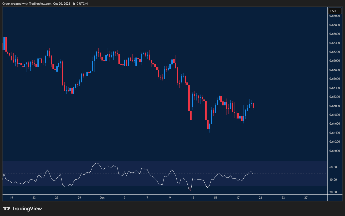 The Australian dollar remains indecisive as its choppy consolidation phase continues. The pair has found a steady ground above 0.6450 as price action broke the previous resistance. The psychological level of 0.6500 is the immediate resistance, and its confirmed breach would bring prices towards the recent swing high at 0.6630. Otherwise, a fall below 0.6440 at the previous double bottom would trigger a new round of sell-off towards 0.6380.