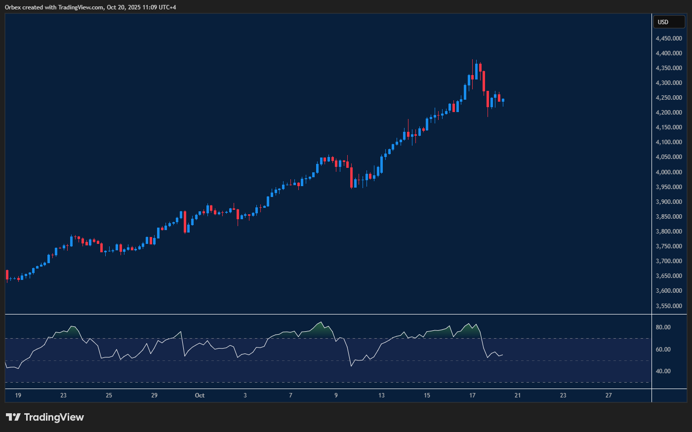 Gold trades slightly lower as prices gear up for another charge at fresh highs. A failure to hold above 4300 put the bulls on the defensive as the precious metal continues to look for the next signal. 4215 at the base of the latest drop is a firm threshold to see if buying interests will continue, and bulls will need to clear 4250 to regain control. Further down, 4170 is a critical floor to keep bullion steady.