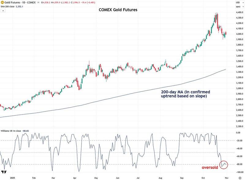 In my last update on October 28th, I noted that both precious metals and mining stocks had become oversold, which, in the context of a confirmed uptrend like the one we’re currently in, typically signals that the pullback is close to ending and usually offer a good opportunity for dip buyers and those looking to dollar-cost average.