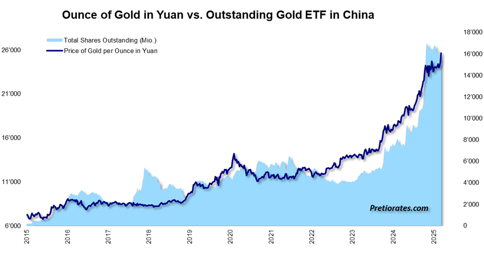 Chinese investors are particularly interested in physical Gold. However, this only covers about 10% of daily trading volume – but is generally traded at the same price. So-called ‘Paper Gold’ is therefore still responsible for setting the price. Nevertheless, it is interesting to note that Chinese investors have not increased their exposure to Gold ETFs in recent months following last year's rush.