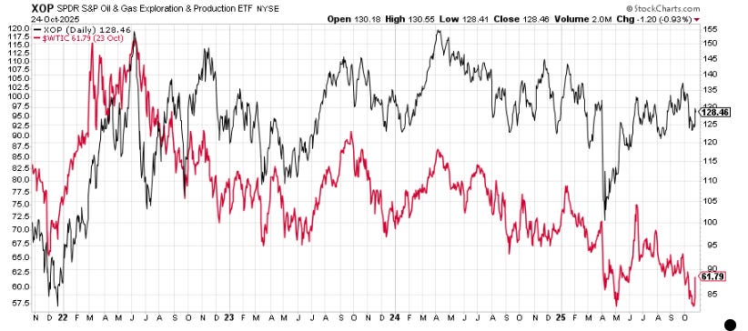 Gold knew this months ago, which is why it has clobbered the S&P 500 this year (gold’s up 56% year-to-date, silver 65%, and the S&P 500 15.4%). What’s different this cycle is how badly oil has lagged, at least as an inflation hedge. GDP growth (minus capex on AI) is more tepid than the official numbers show (our Doom Index confirms this in the reading we’ll publish next month). But does this change anything with regard to the Trade of the Decade?