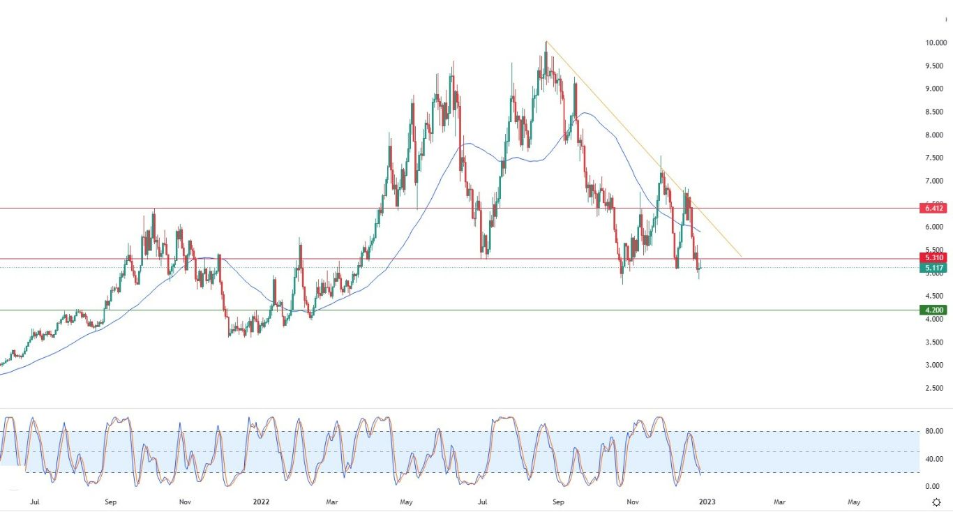 Therefore, we expect natural gas to return to decline during its upcoming trading, especially as long as it stabilizes below 5.310, to target the 4.200 support level.