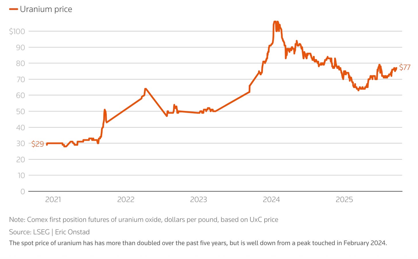 Separately, last month, the U.S. Department of Energy issued the first contracts for new reactor fuel. Then, on September 8, tariff exemptions for uranium, gold, and tungsten took effect under a new executive order.