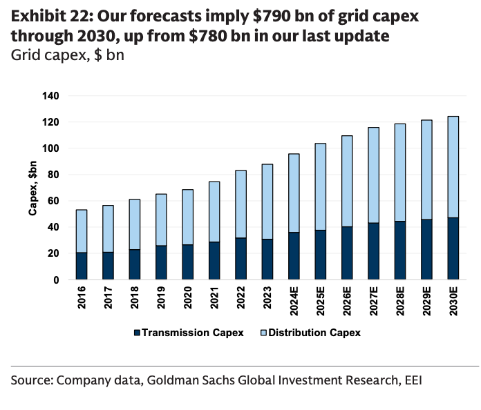 My old firm, Goldman Sachs, recently projected that powering AI infrastructure globally could require roughly $790 billion in grid spending through 2030. That’s about 45% more than what the U.S. spent building the entire Interstate Highway System, adjusted for inflation.
