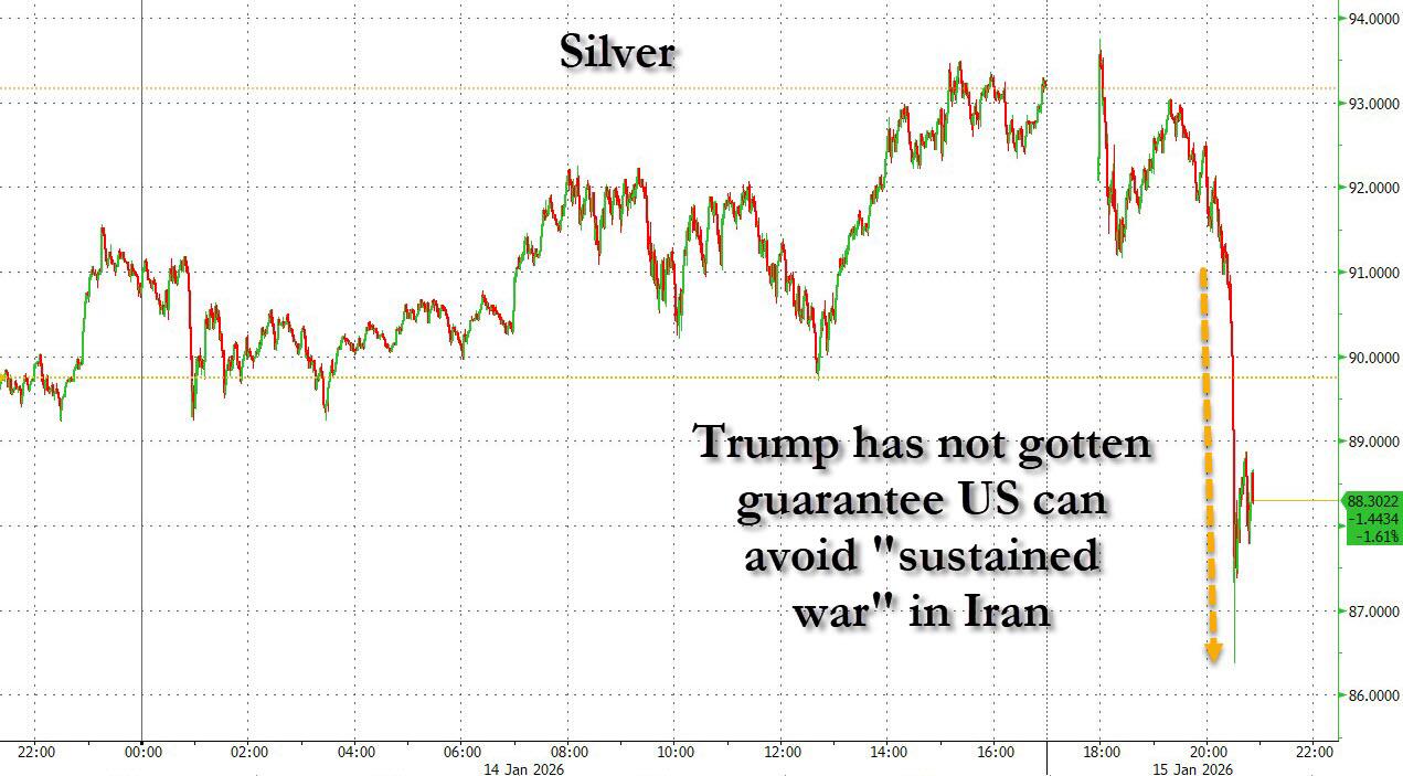 ... while silver plunged as much as $6, from $92 to $86, in seconds as stop loss selling kicked in, in a preview of how painful the unwind of the current historic rally will eventually be.