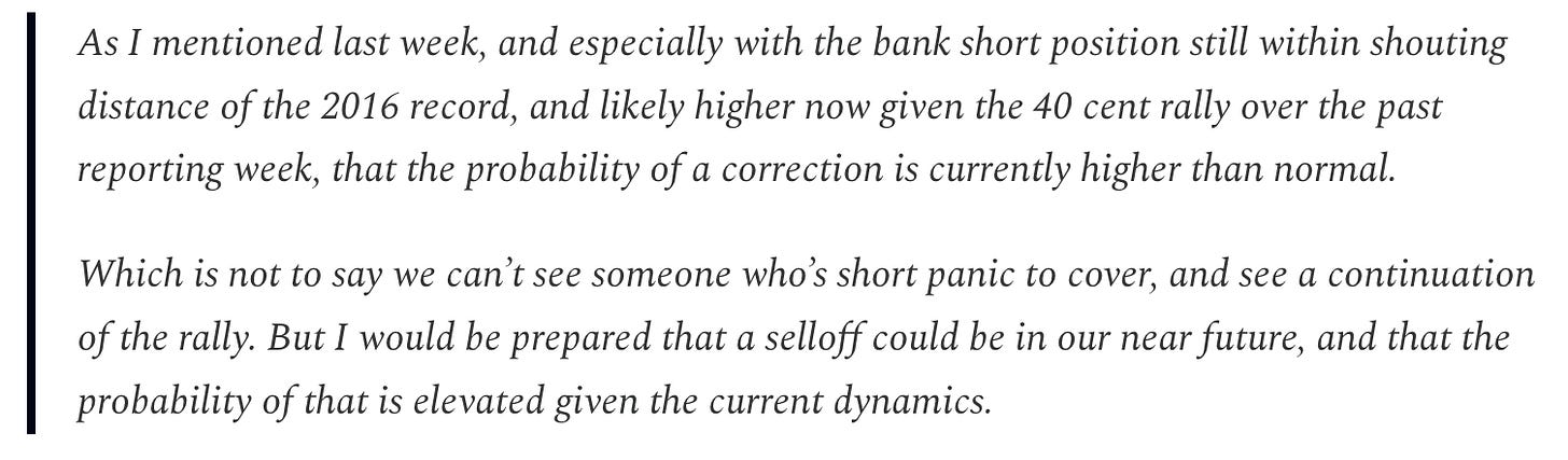 I mentioned on Wednesday that between the current positioning by the banks, as well as how we had just witnessed one of the more rapid and forceful silver rallies in recent years, that we were in that territory where the chances of a sell-off were elevated.