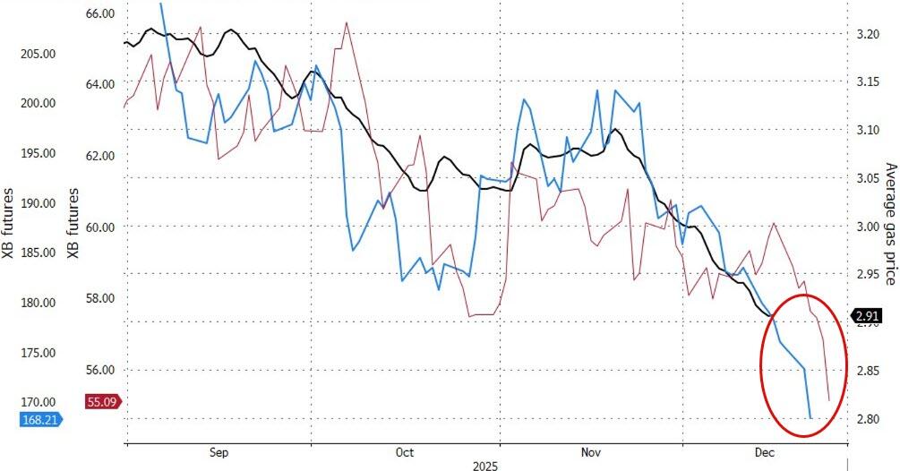 And given the lead-lag nature of the energy supply-chain, pump-prices could be set to tumble further over the holiday season...