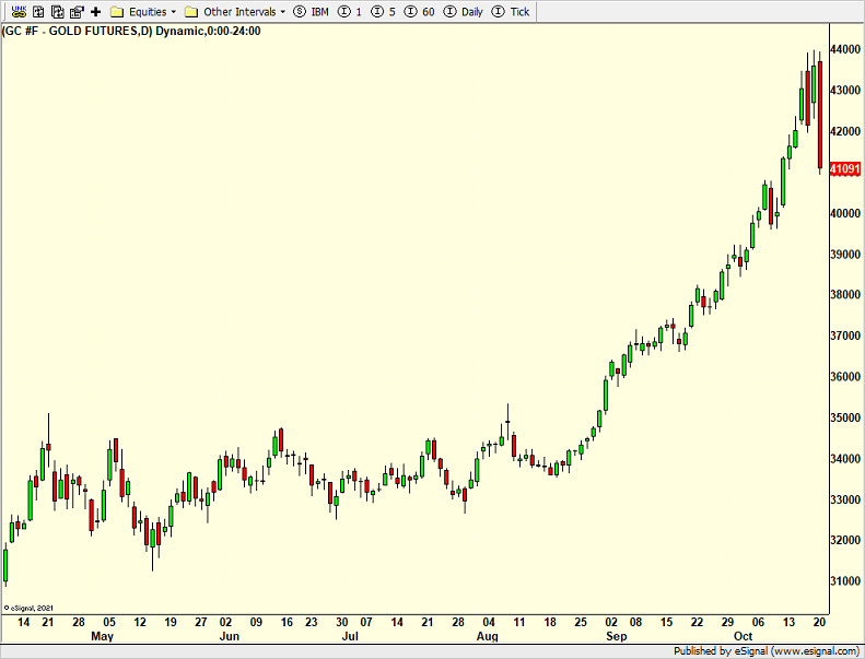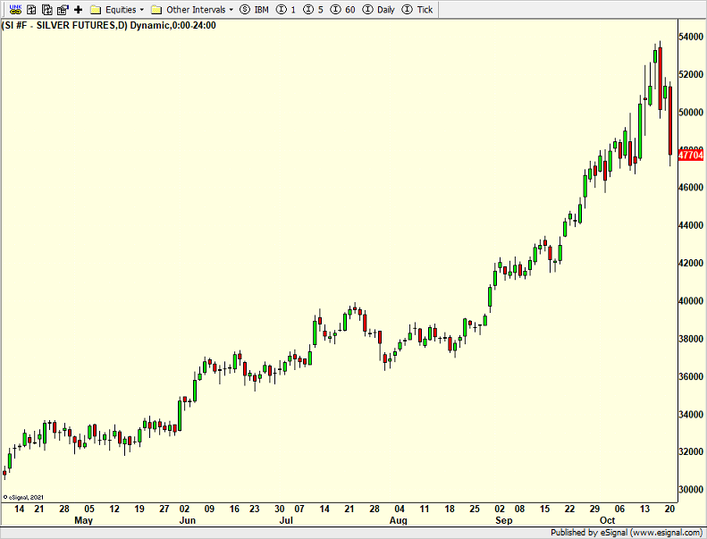 I don’t know whether this trade is in the third or fourth quarter of a game, but risk far outweighed reward. Over the past three sessions we have seen two downside reversals with Tuesday showing a significant loss. Of course, gold is still up enormously. Markets do a great job of punishing late comers, those who buy simply because everyone else is buying. And then they get shaken out on the first plunge.