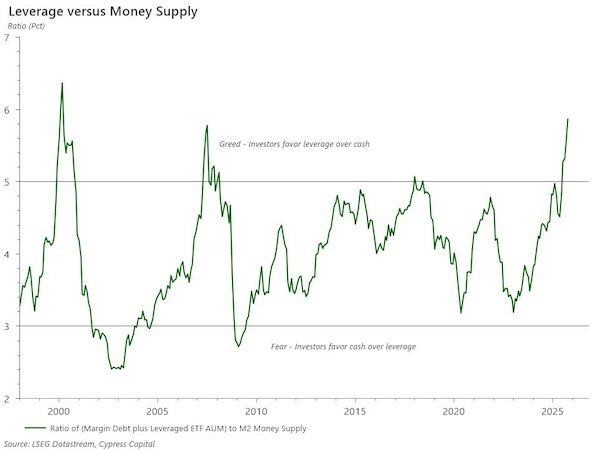 From the looks of leverage being employed in the markets, it’s certainly hard to argue any excesses at all have been addressed by the central bank. As Mark Dodson points out, “the ratio of margin debt to money supply is higher than at any time except February and March 2000,” which was the peak of the dotcom bubble.