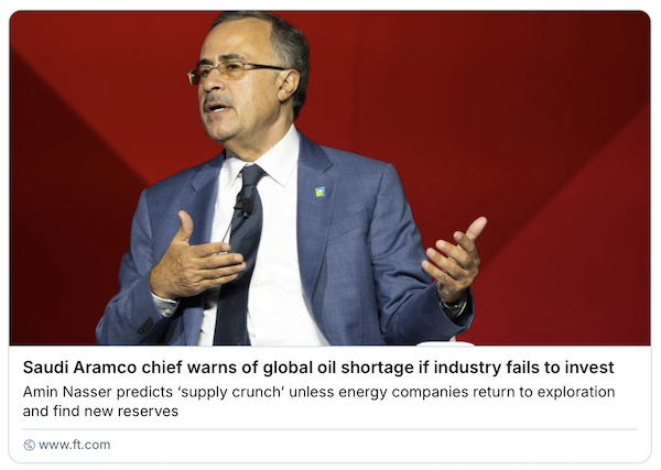 Some have also suffered from dramatic underinvestment. As Amin Nasser tells The FT, “We had a decade where people didn’t explore. It’s going to have an impact. Eighty to 90 per cent of growth came from shale. If you look at the next 15 years, shale is most likely to plateau and decline. Where are you going to bring the additional barrels to meet demand?”