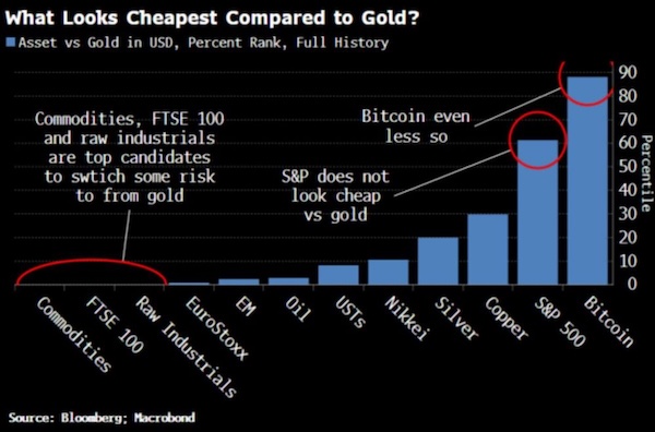 The move in gold prices also suggests that certain asset classes that historically have protected against persistent inflation may be deeply undervalued. “Some assets are remarkably cheap relative to gold. Top candidates among the major assets are commodities, the FTSE 100 and raw industrials — non-exchange-traded materials such as burlap, rubber, tin and steel scrap,” writes Simon White.