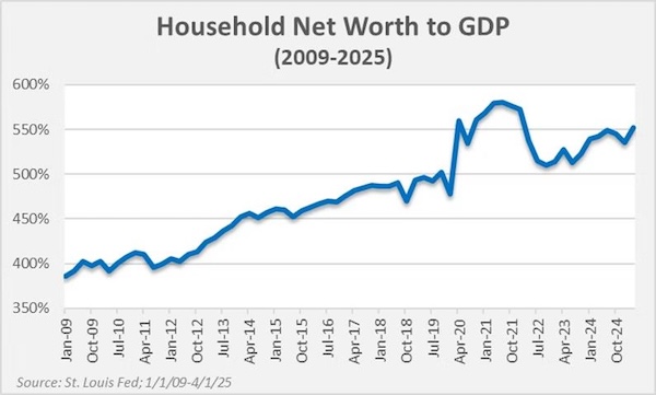 In addition to risks to financial stability, gold may also be warning about the persistence of inflation. “We believe asset inflation spilling over into consumer prices is one reason inflation has been stickier than expected. While price pressures have moderated from their 2022 highs, inflation is still running near 3% and has remained above the Fed’s target for over four years,” writes Eric Cinnamond.