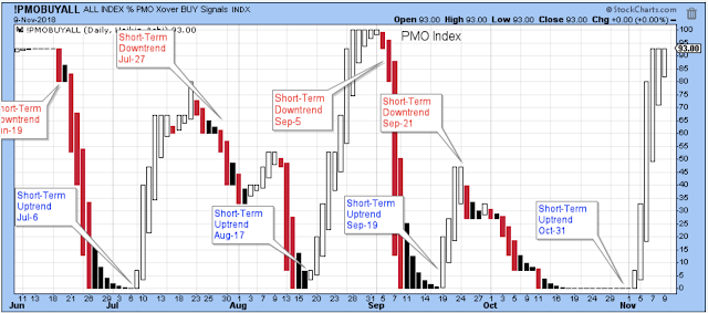 Here is a look at the Short-Term PMO Index. The speed with which it went from zero to ninety seems consistent with a temporary, oversold short-covering rally. But the election was in there too, and that throws the cycle pattern off a bit. Not that it matters though. It doesn't seem worth it to over-analyze the market in the short-term.