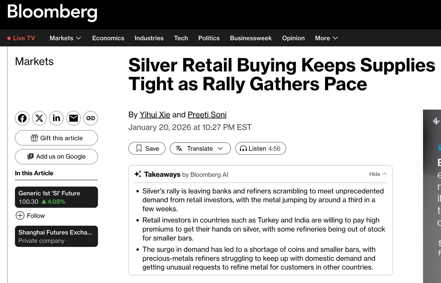 Bloomberg had an article earlier this week on the global silver dislocations, and below are some interesting excerpts that fit in line with what I just mentioned.