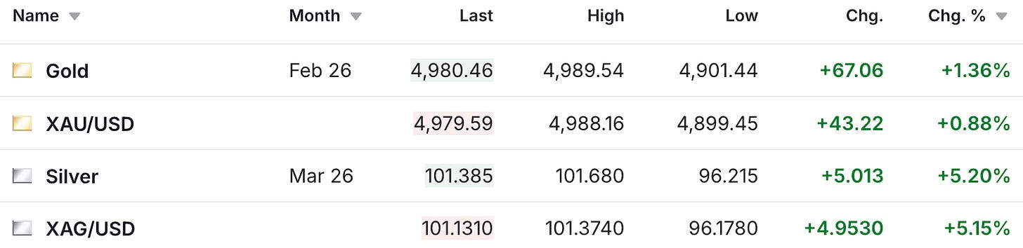 What better way to close out another historic week in the gold and silver markets than with gold on the verge of $5,000 per ounce, while the silver price just crossed over the $101 mark?