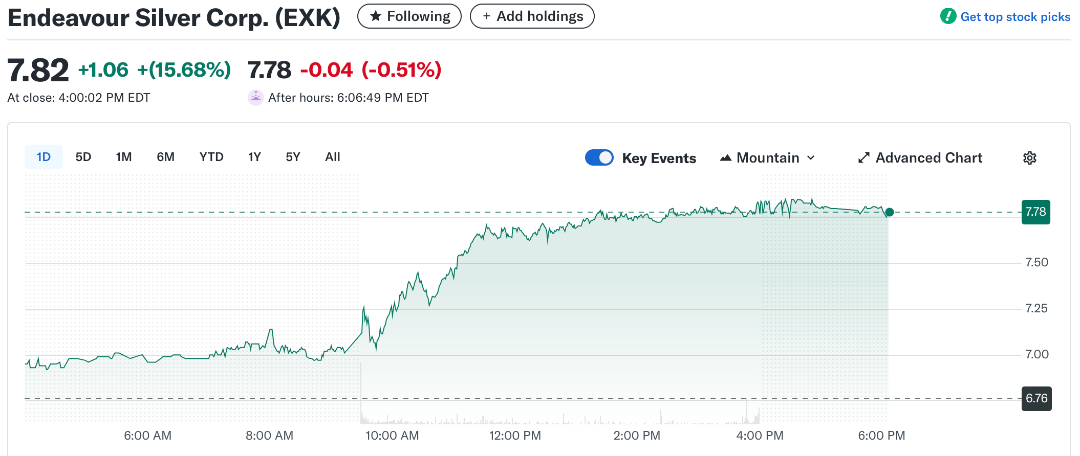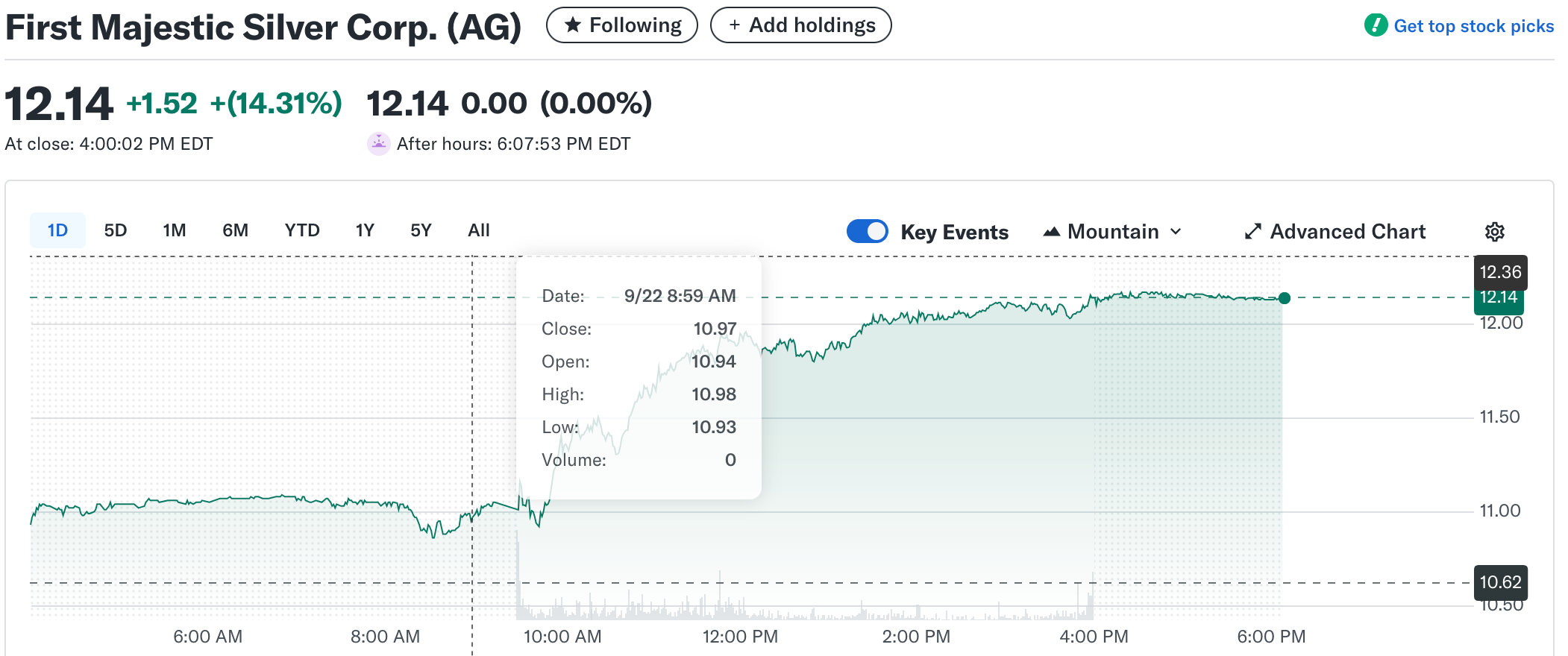 So if you're a long-time gold and silver investor, hopefully you enjoyed the price action today. It was also a big day for a lot of the silver miners in particular.