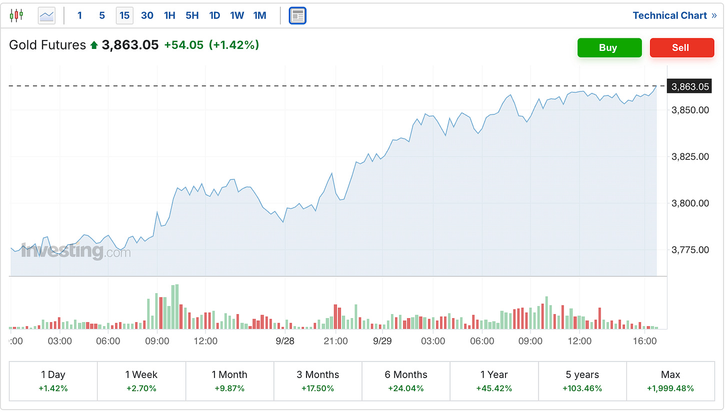 Lastly, the gold futures also had a big day on Monday, as they were up another $54 to $3,863.