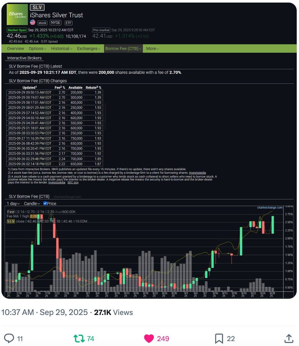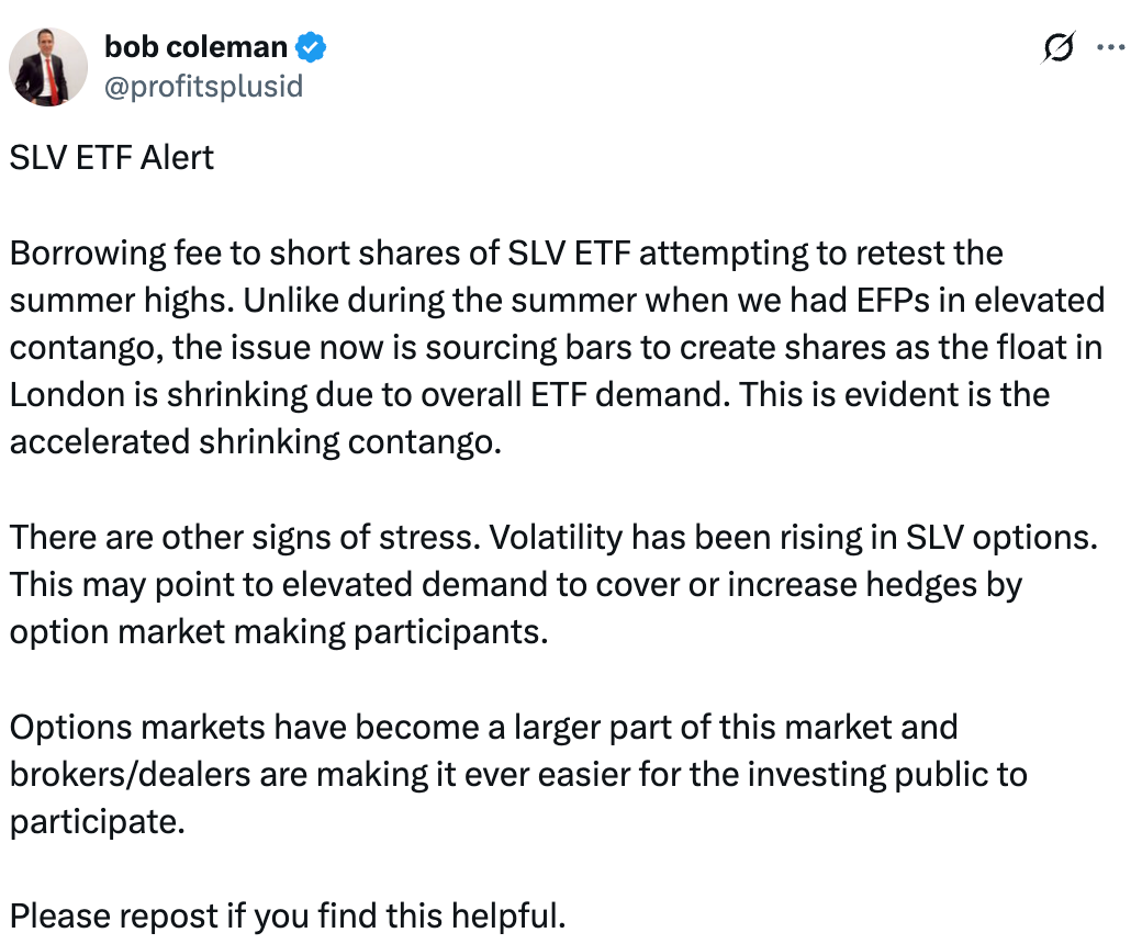 It also seems like we’re at the point where it’s safe to start calling this a short squeeze. With one of the latest pieces of evidence being what Bob Coleman reports here about how the lease rate to borrow SLV shares spiked again and is near the highs of last summer.