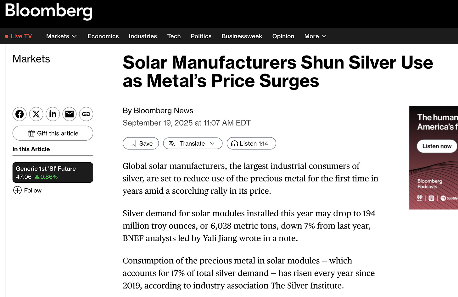 There does continue to be a lot of thrifting with the amount of silver that goes into these solar panels, with Bloomberg even suggesting that net solar silver demand will be down this year.