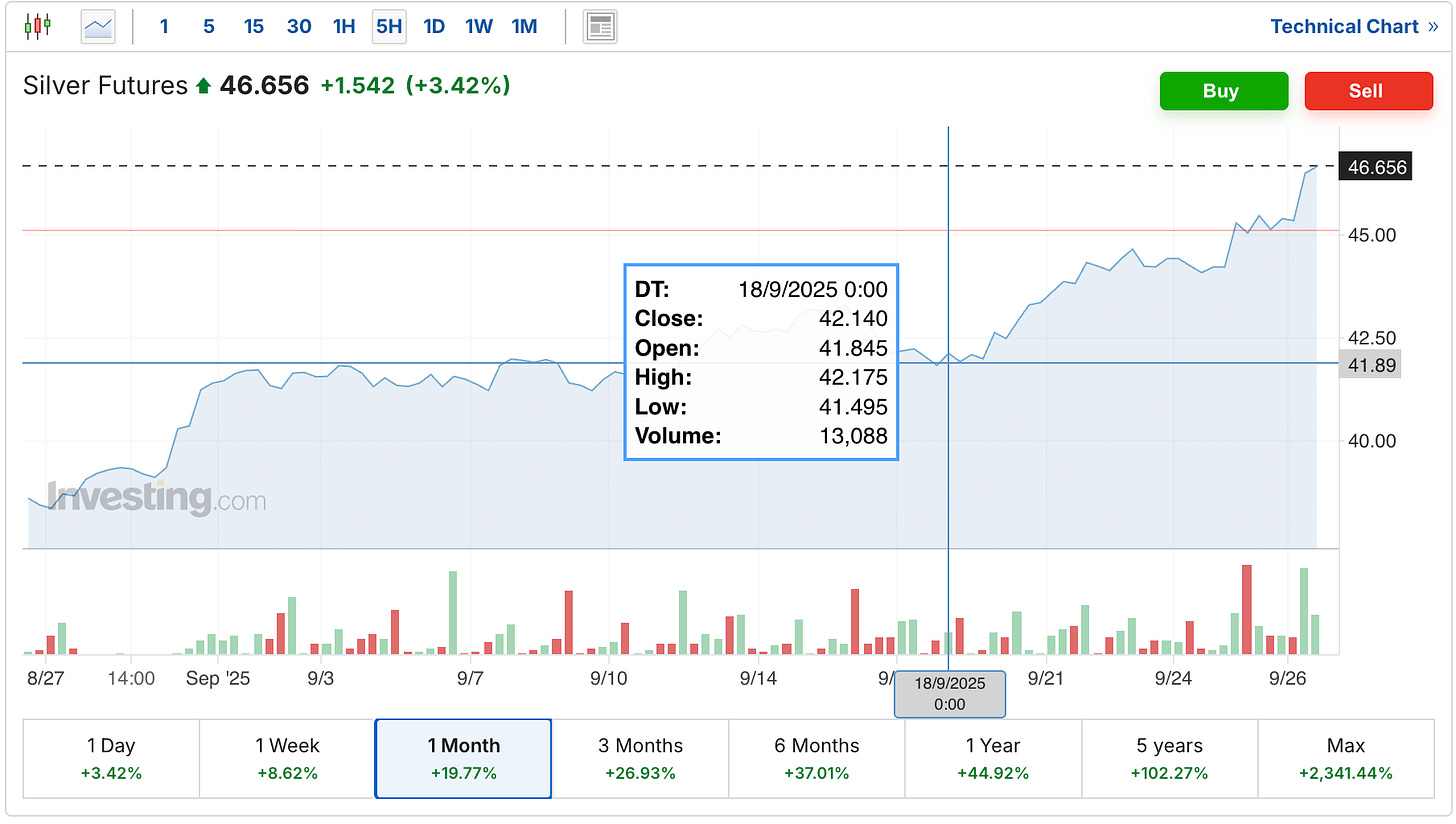 Hopefully I’ll get this next comment across in the right light. But given the current volatility in the silver market, it’s not inconceivable that we could actually see a new all-time record high as early as next week.