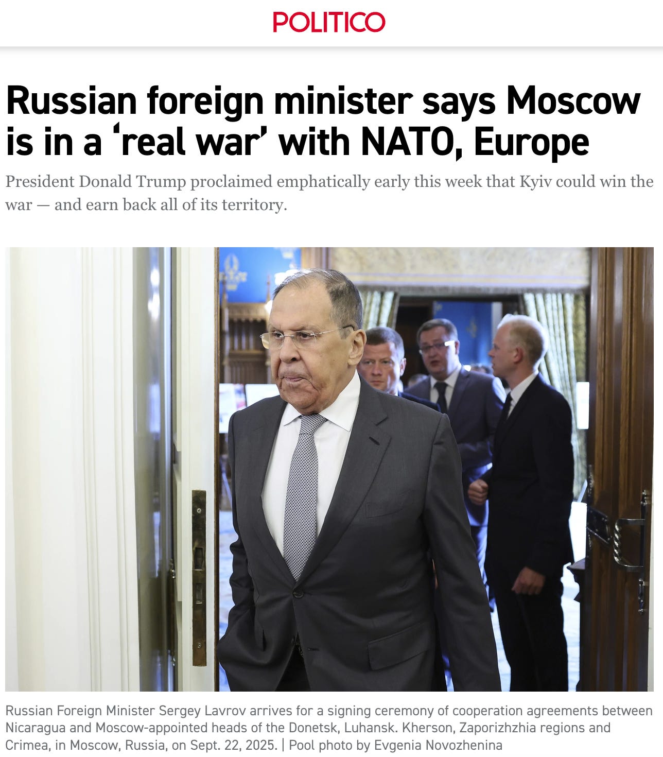 Then this Thursday, Russian Foreign Minister Sergey Lavrov said that Russia already considers NATO to have declared war on Russia.