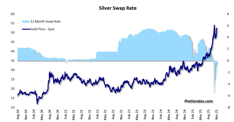 SWAP transactions were introduced to avoid physical transport between London (physical trading) and New York (paper trading). They are a central element of global precious metal trading because they connect the markets without the need to actually move bars. Normally, SWAP rates are positive – storage costs money, after all. However, if they fall into negative territory, this signals physical scarcity: traders then pay premiums to get their hands on Silver immediately. The rate slips even further into negative territory when short positions are closed in a panic – a classic short squeeze.