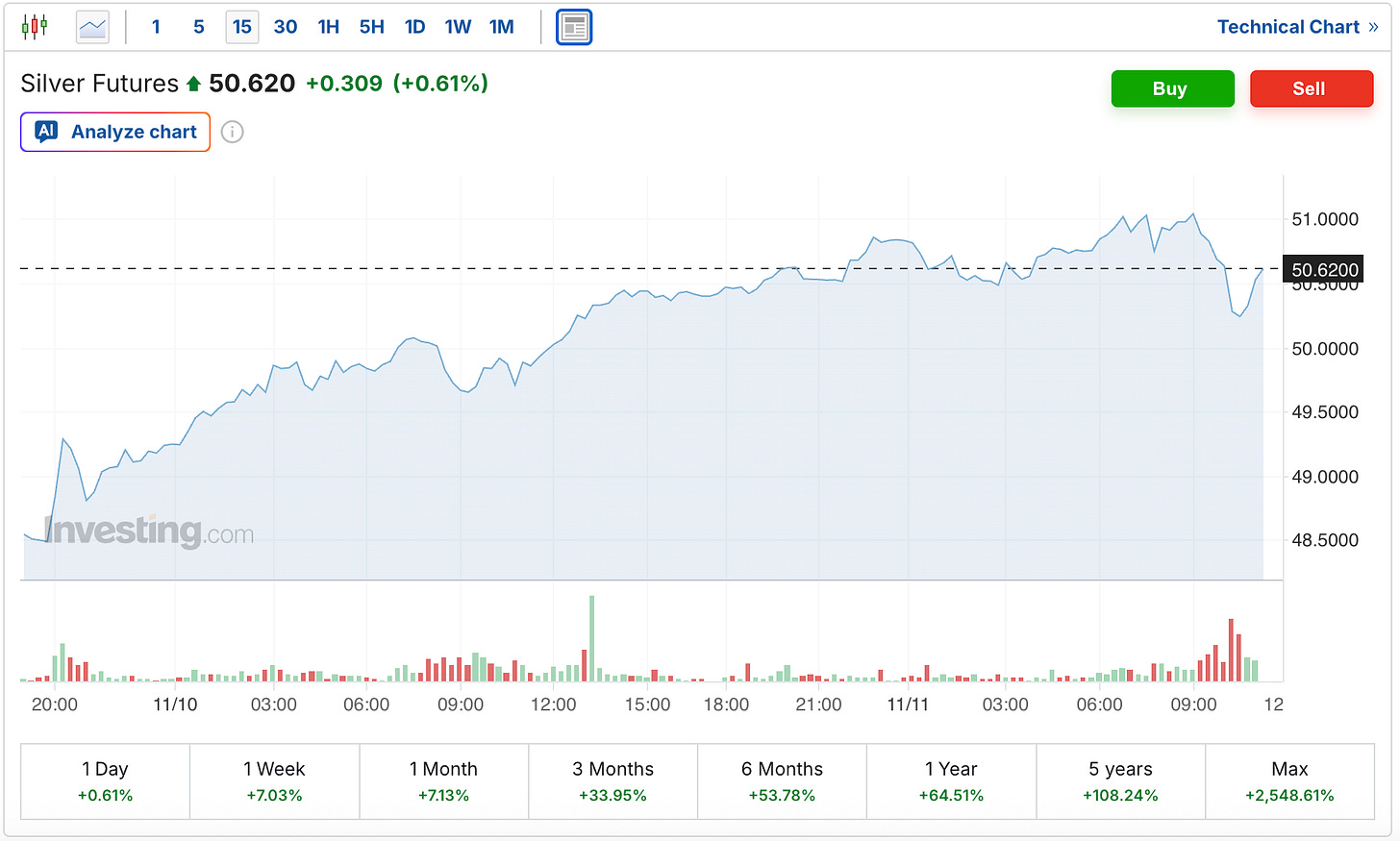 Silver Now Up Over $2 On The Day As Rate Cut Expectations RiseGold & Silver Rally Early While Bessent Doubles Down On Perplexing 'Falling Inflation' Comment