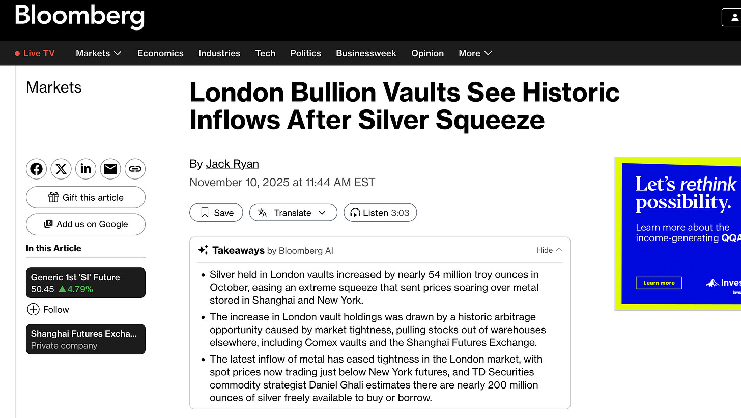 As I mentioned yesterday, Bloomberg published an article about the silver that returned to London following the breakage in the market on October 9th.