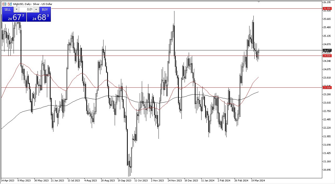 The main reason I say that is that the $26 level above is a massive resistance barrier that traders have been very well accustomed to over the last couple of years and therefore whether or not we can break above there is a completely different question. Unlike gold, silver isn't necessarily always used for a precious metal. It's also an industrial one and therefore it does have a little bit different behavior. Beyond that there have been multiple fines against JP Morgan for manipulating the market. This is a known known and the paper market in silver offers more ounces than there actually are in the world. So therefore, you have to understand the game you're playing.