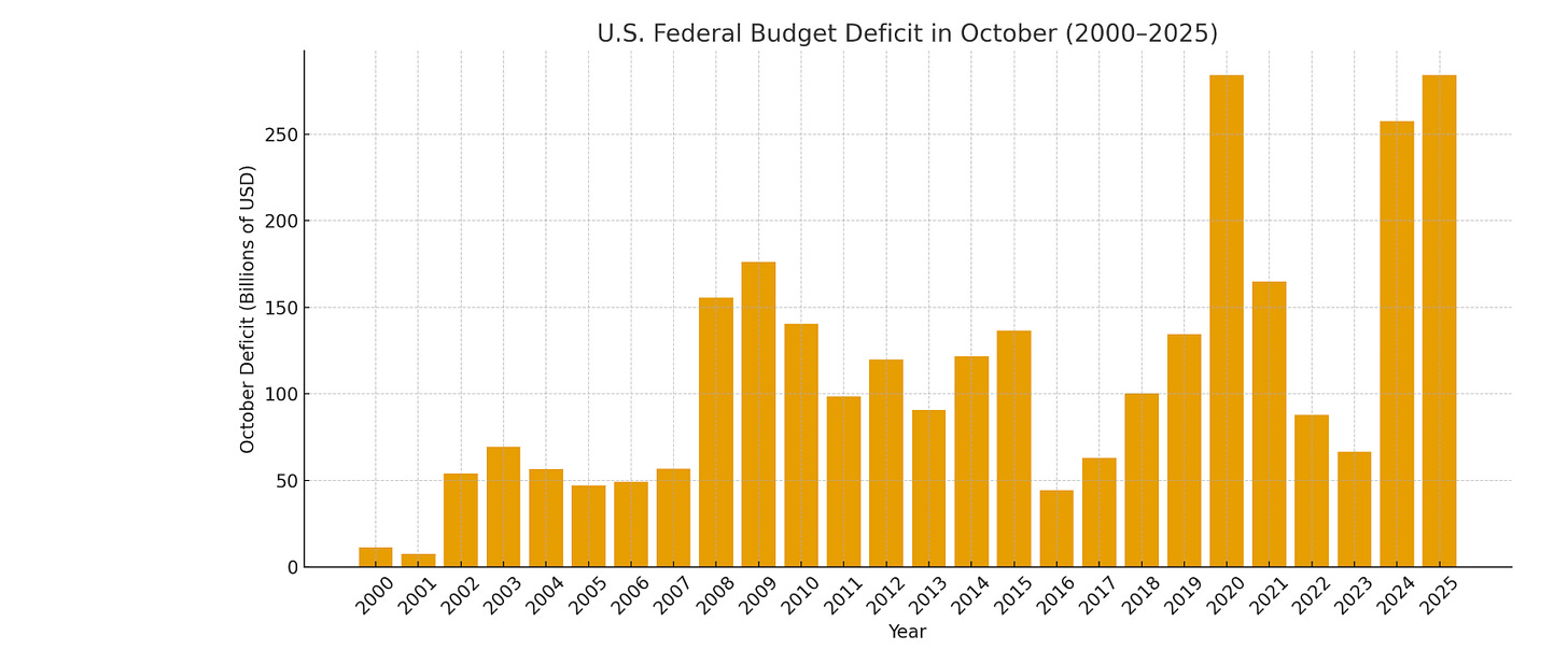 While all this is happening, the federal government also just ran the biggest October budget deficit in history, which surely isn’t helping the matter.