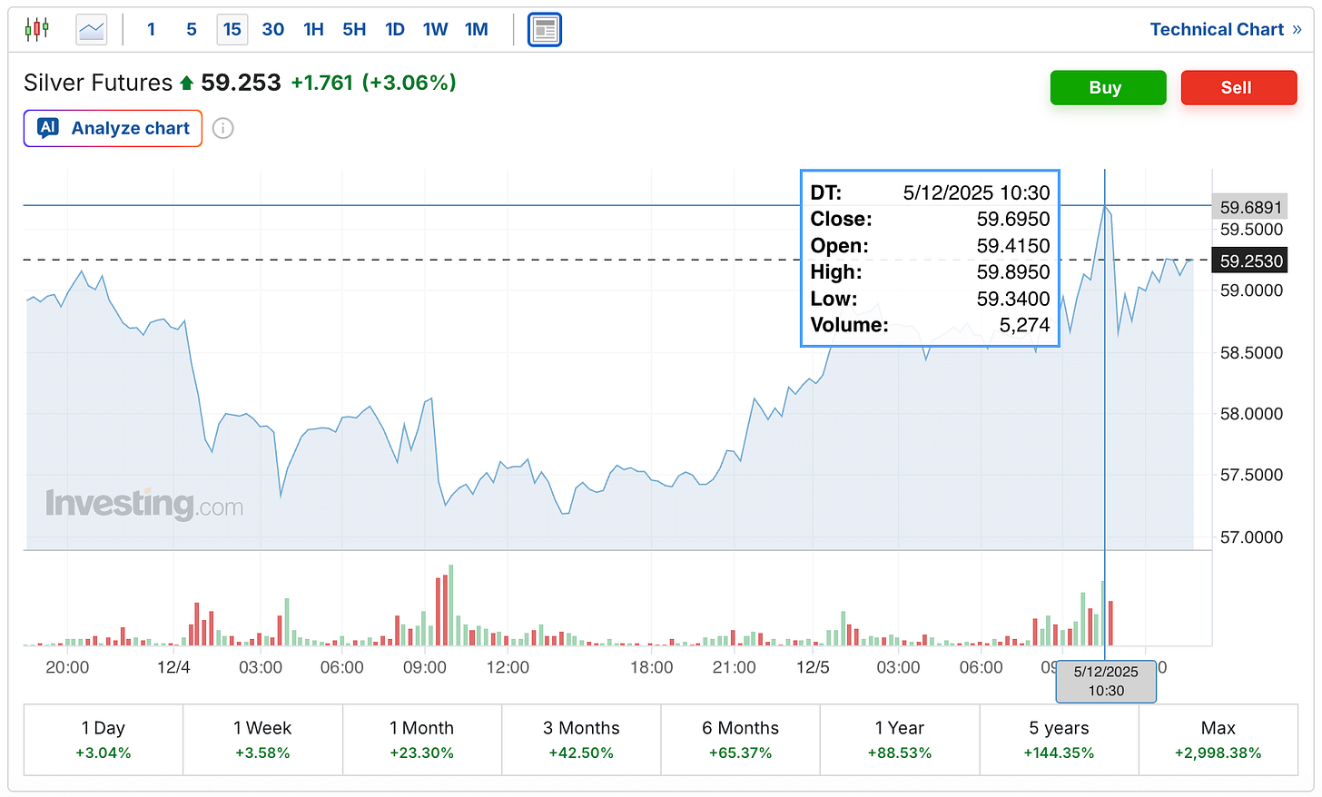 Silver Futures Come Within 35 Cents Of $60 LevelSilver Breaks $58, But Then Just Keeps Surging