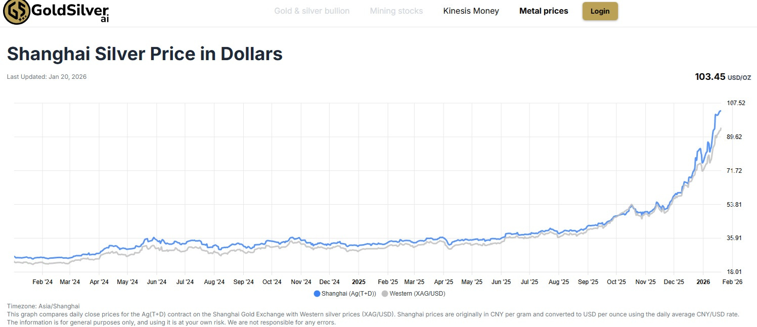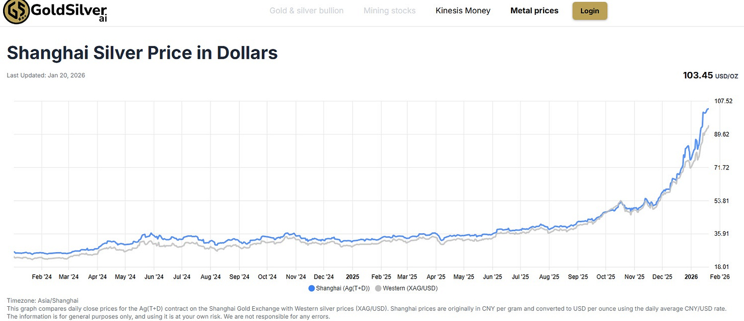 …but on physical markets like the Shanghai Metals Exchange, the price is about $103, with the premium over paper widening steadily.