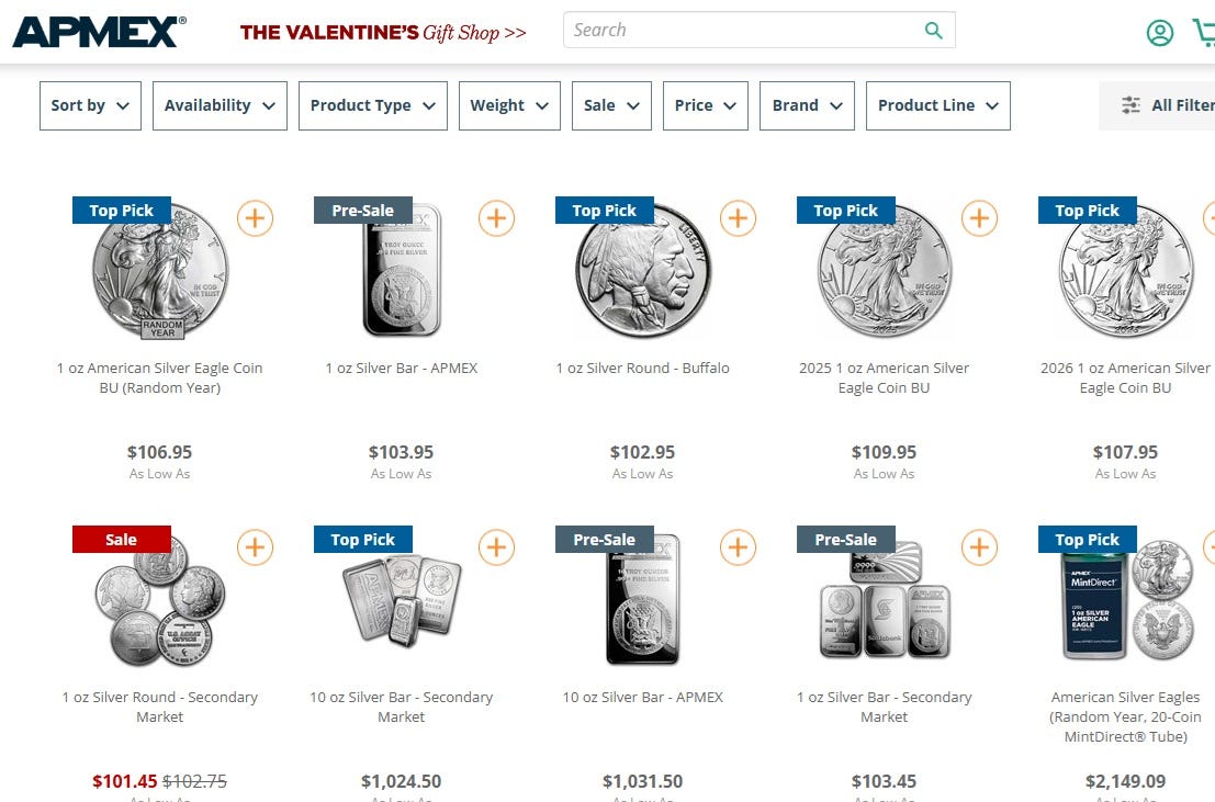Meanwhile, metals dealers like APMEX are solidly above $100: