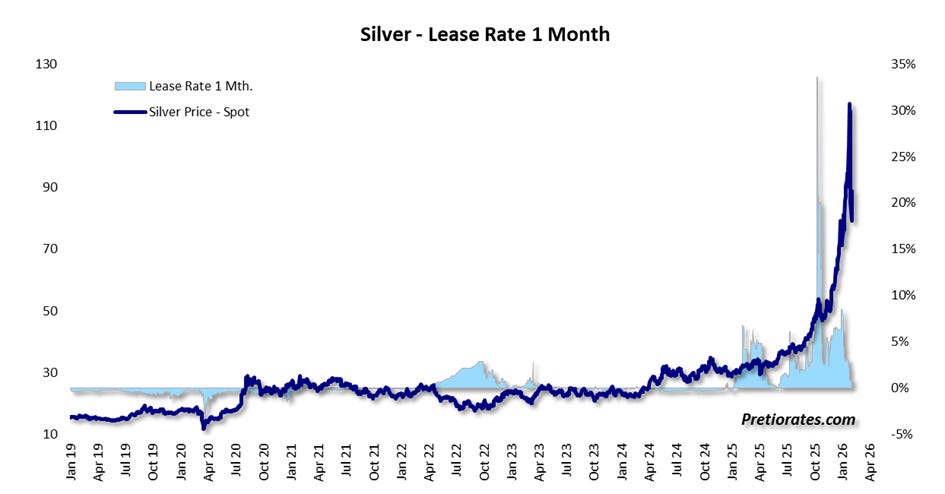 as has the lease rate: while not so long ago, significantly higher interest rates were paid for borrowing physical silver, this has now fallen back to around 1.1%.