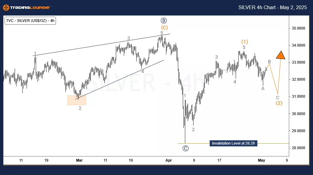 The H4 chart zooms in on the sub-waves of wave (2). It remains uncertain whether wave (2) has already completed at the low on May 1, 2025, or whether it will develop into a deeper double correction. Given that Gold has not yet finished a similar corrective move, Silver could also extend lower.